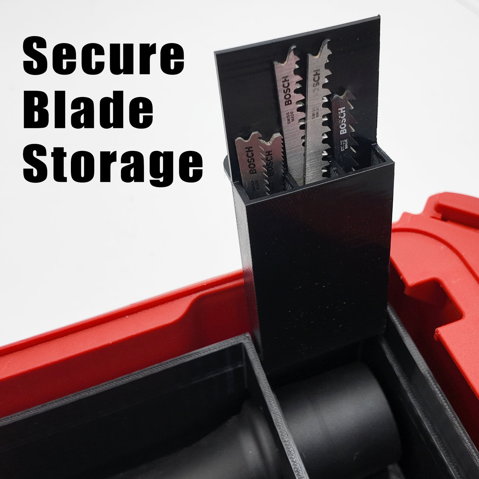 - Custom PETG liner for the Milwaukee M12 FUEL Jigsaw Model M12FJS0, blades, and a 2.0 AH battery.